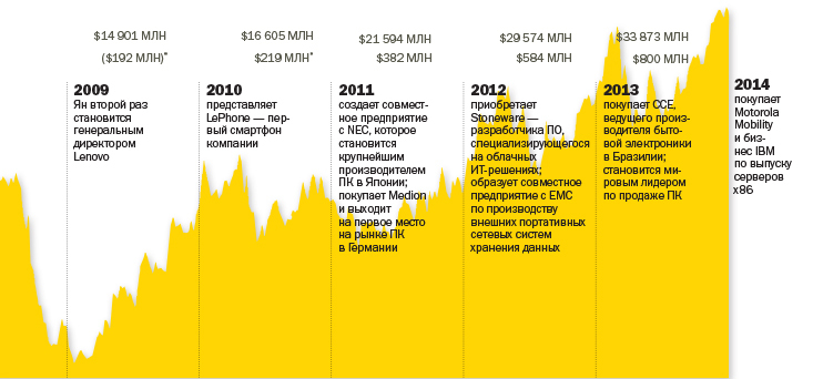Ян: Когда мы покупали у IBM бизнес персональных компьютеров, а это было 10 лет назад, мы даже не думали, что такое возможно. И вот мечта сбылась. Но мы понимаем, что мир меняется. Сейчас эпоха уже не ПК, а «ПК-плюс». Поэтому мы хотим вырваться в лидеры на других направлениях — мобильных телефонов, планшетов, внутренних серверов.