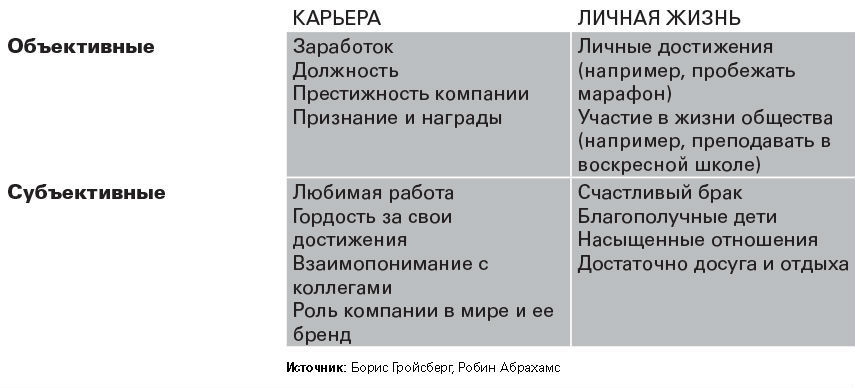 Не следует начинать серьезного дела, не определив четкие критерии успеха, основанные на конкретном представлении о том, как должна выглядеть «победа». Этим же принципом следует руководствоваться, выстраивая карьеру и личную жизнь. Человеческий век короток, нельзя растрачивать силы, гоняясь за «объективным успехом», который не соответствует вашим субъективным потребностям. И в профессиональной, и в личной жизни нужно задавать конкретные, значимые и достижимые цели, и тогда ваши вложения — в виде времени и усилий — принесут максимальную эмоциональную отдачу.