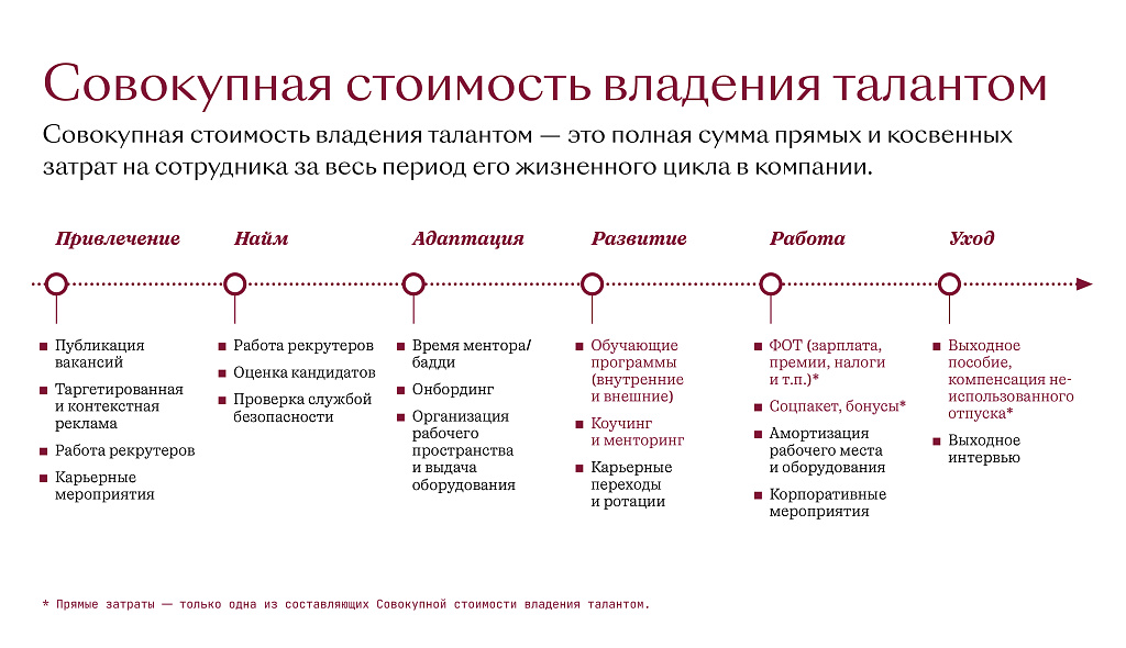 Совокупная стоимость владения талантом в этой модели учитывается наравне с другими метриками, а не вместо них.