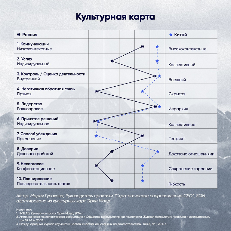 На национальном уровне большинство руководителей в когнитивном плане похожи друг на друга. Их объединяет многолетний стаж и экспертный опыт отраслевой работы, который позволяет применять в коммуникации хорошо зарекомендовавшие себя приемы, не опасаясь сбоев. Коллизия возникает, когда апробированные модели используются в других культурах, когда ценностные установки собеседников разнятся.
